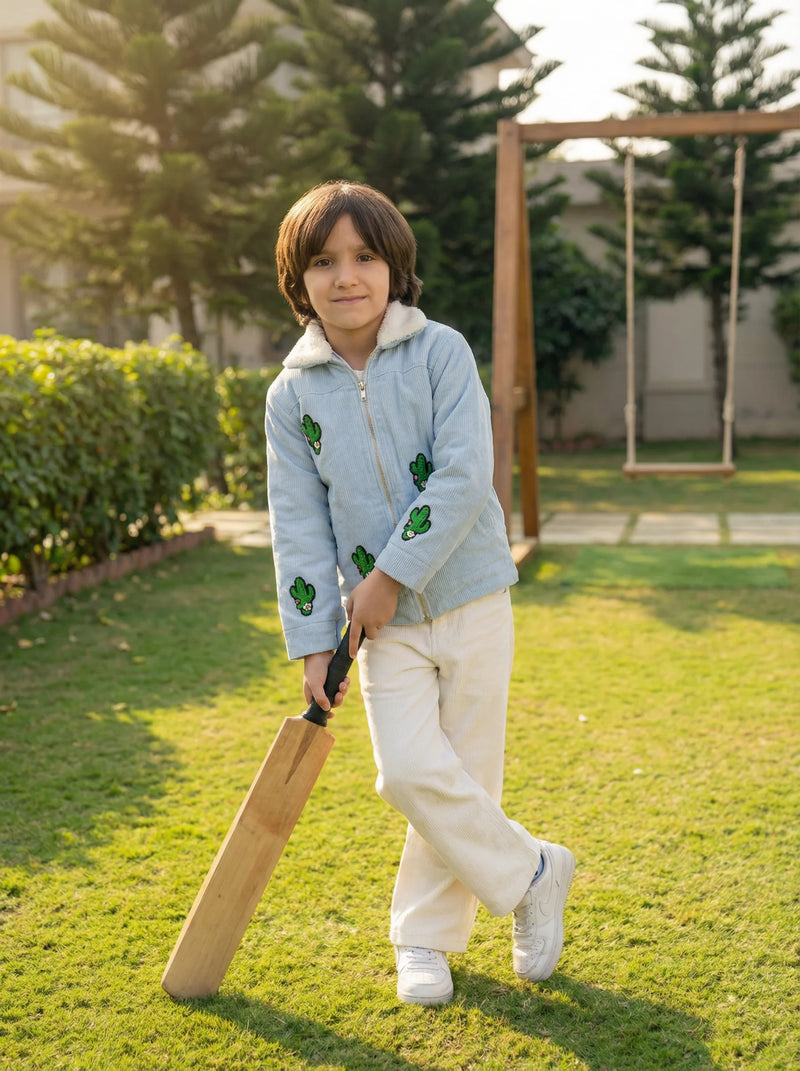Corduroy Cactus Sherpa Jacket & Straight Trousers Set