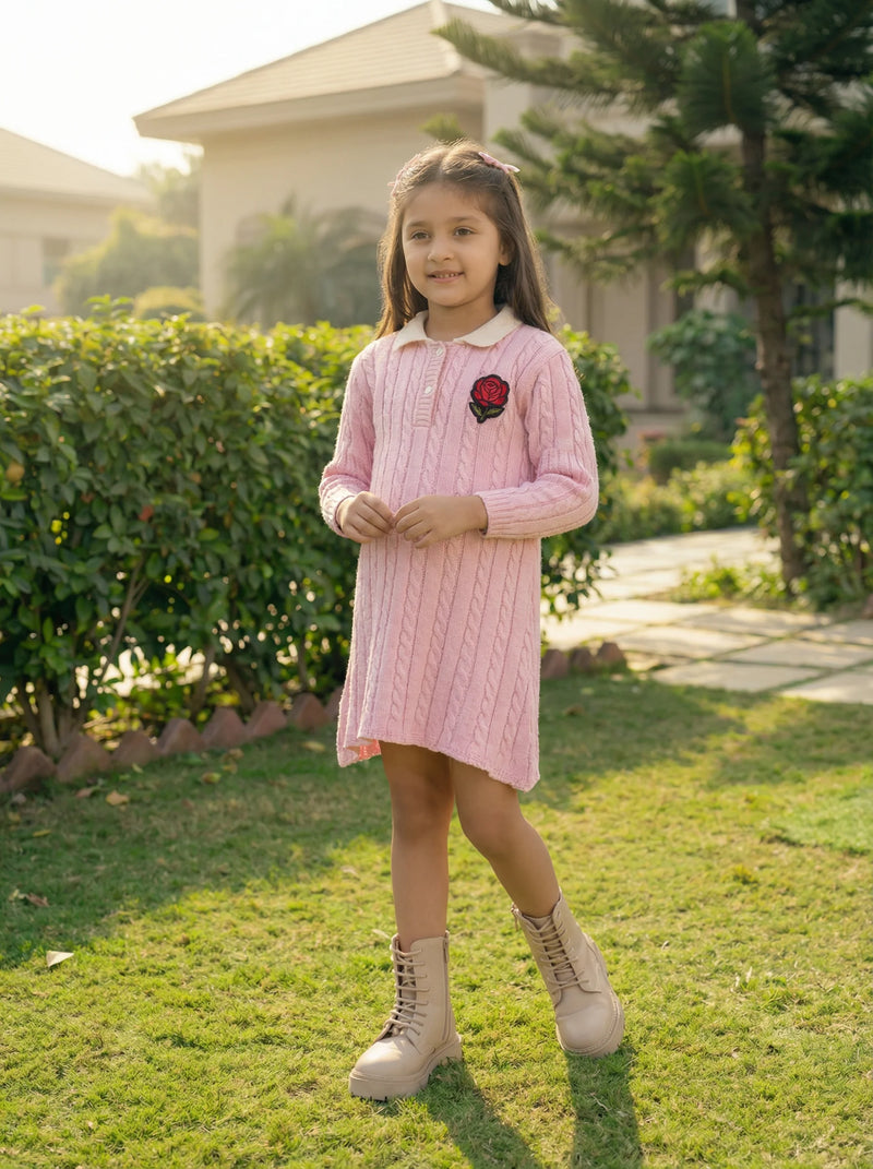 Cable knit jumper dress with rose