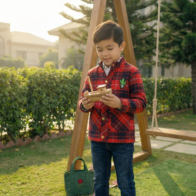 Boys Red plaid shirt jacket